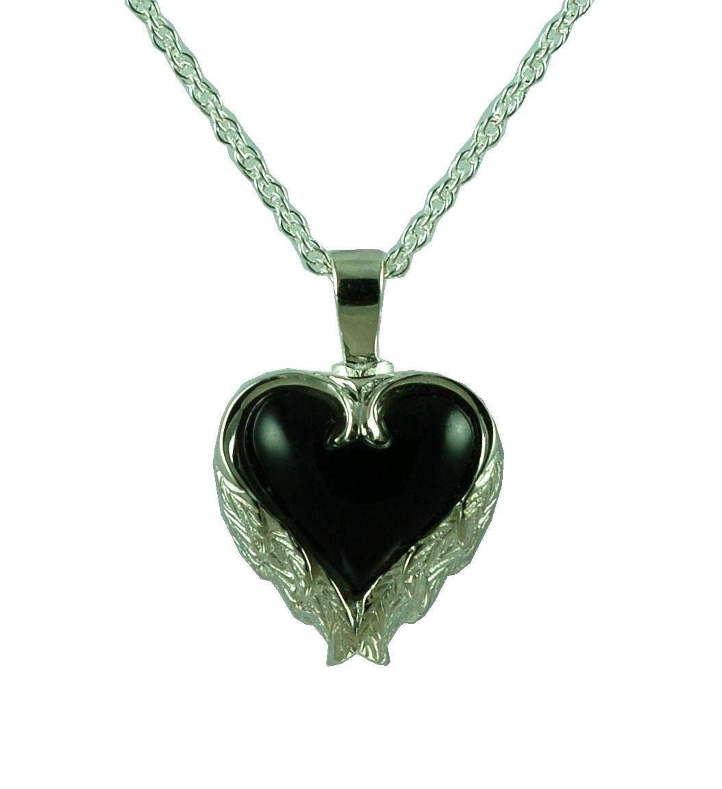 Onyx Heart Wings Cremation Urn Necklace, Memorial Jewelry