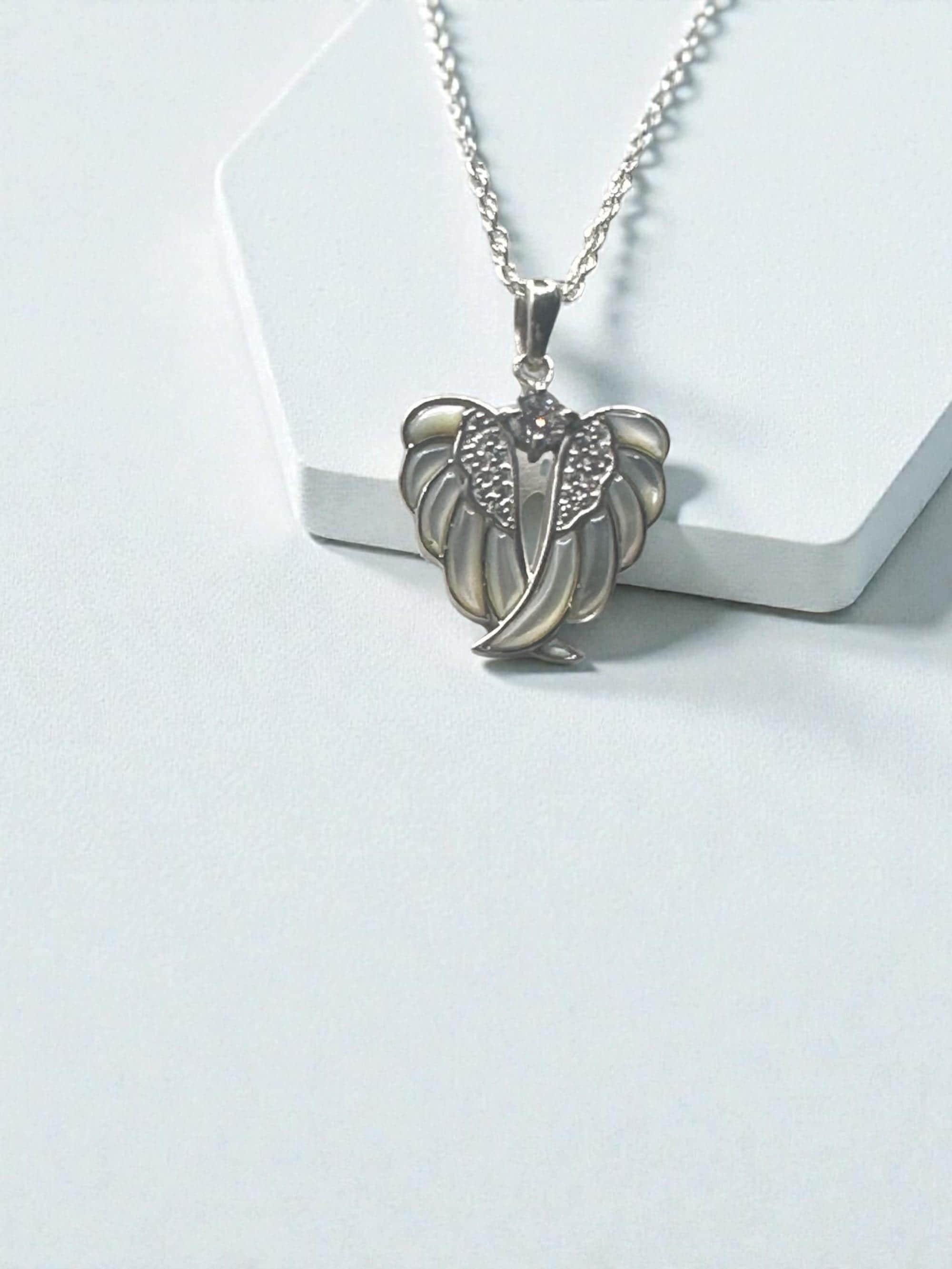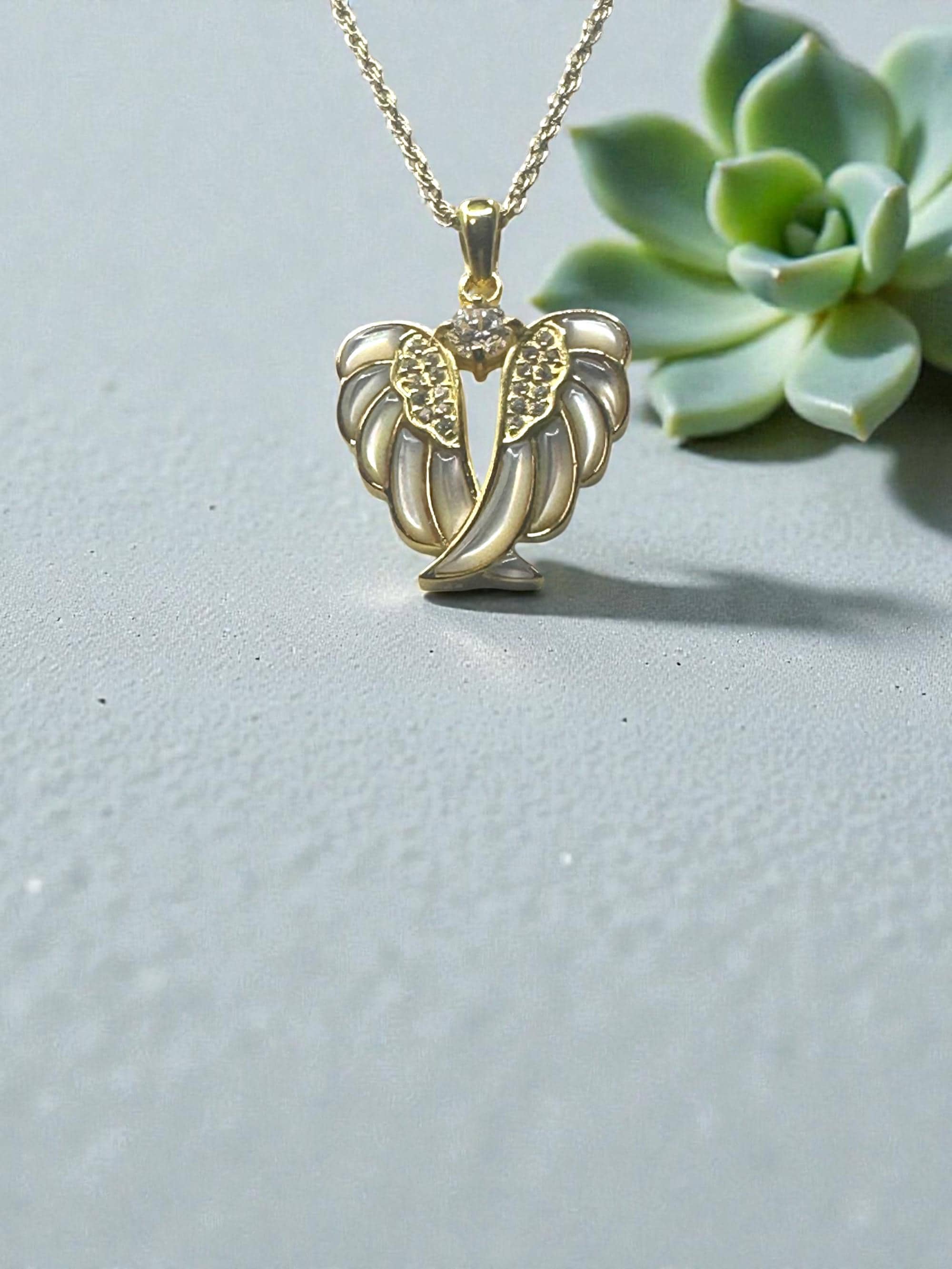 Cremation Angel Wings Mother of pearl with CZ stone Locket Urn Necklace