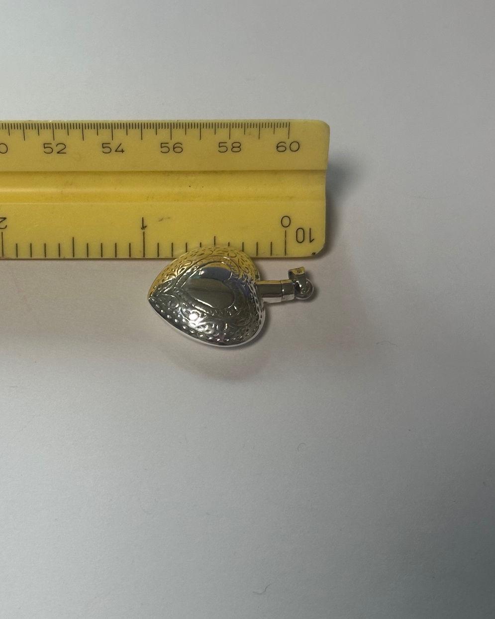 This beautiful etched design heart is a unique way to hold a loved one close. This pendant can hold a small amount of cremains, lock of hair, or dirt from the sacred burial grounds. This piece comes on an 18" matching chain. 1 INCH