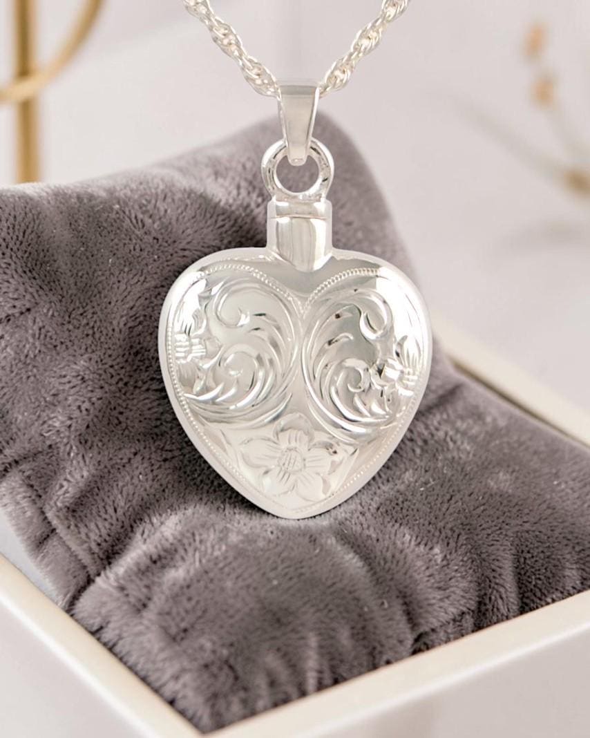 Cremation Etched Heart Pendant-Urn-Memorial Necklace-Memorial Jewelry-Ashes Necklace-Cremation Locket-Memorial Gift-Cremation Jewelry