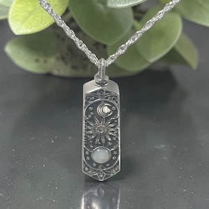 This beautiful cremation cylinder is a unique way to hold a loved one close and allow you to view the contents. This pendant can hold a small amount of cremains, lock of hair, or dirt from the sacred burial grounds. This piece comes on an 18" matching chain. Can mesage if you need longer chains, 20 inch or 24 inch.